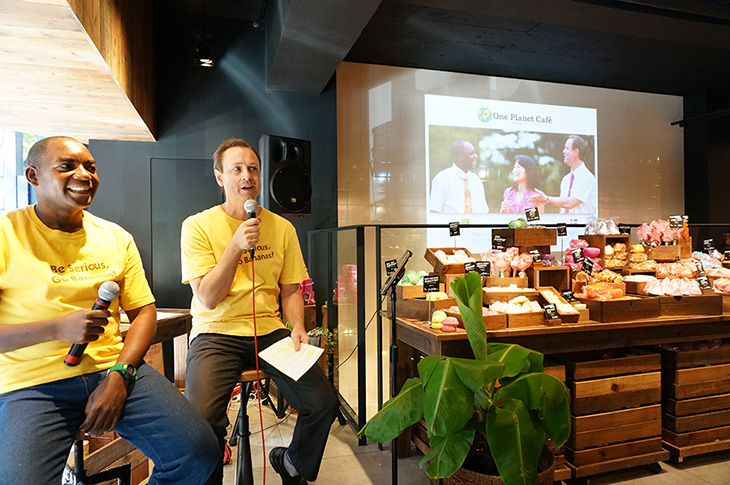 トークセッションに登壇したのは、バナナペーパーを企画した株式会社ワンプラネットカフェの取締役のお二人