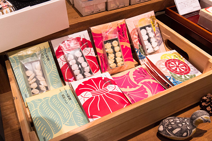 富山県高岡で創業170余年を迎える大野屋さんのラムネは、和菓子の木型が生み出す美しい造形と、国産の素材で作られたやさしい味わいです。味と型によって数種類あります。パッケージもおしゃれで人に上げたくなるようなラムネですね!
