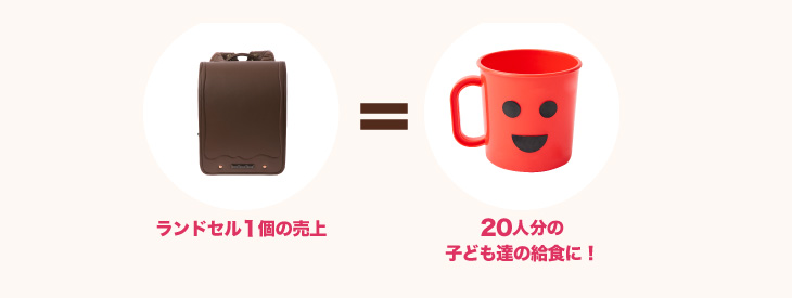 ランドセルを1個買うと、なんと20人の子ども達に給食を届けることができるそう!