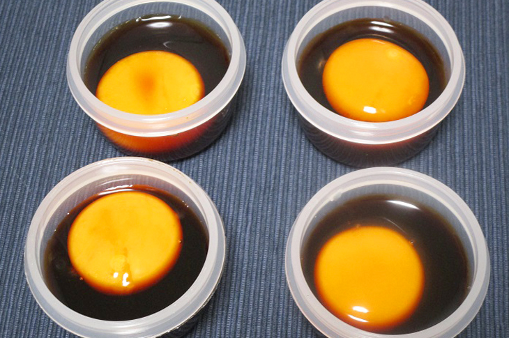漬ける時間によって食感が変わるのもお楽しみ。ポイントは、塩分濃度の高い醤油だれに漬けておくことで、卵黄の水分が抜けてねっちりとした食感に。お酒のつまみとしてちびちびいただくには、一晩以上寝かせておくのがおすすめ。まるでカラスミのような食感になりますよ。