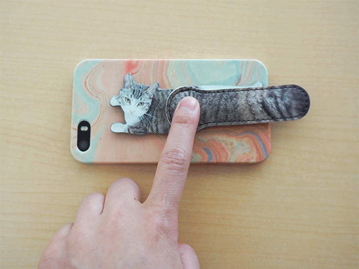 しっぽの付け根を押すと、しっぽがくるりんと丸まります。ジャレついてくるみたいで、思わず胸キュン。片手で持つときに支えやすく、机に置くときはスマホスタンドにもなるんですよ☆