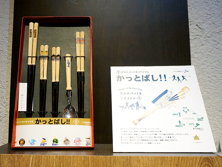 折れたバットからリサイクルしたお箸、「かっとばし!!」などなど。
