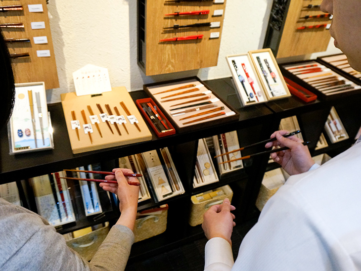 お箸のことならなんでも相談に乗ってくれる「お箸ソムリエ」のようなこちらの方は、運営担当の細井さん。自宅に約50種類のお箸を持っていて、使い心地や耐久性を常に試しているんだそう。