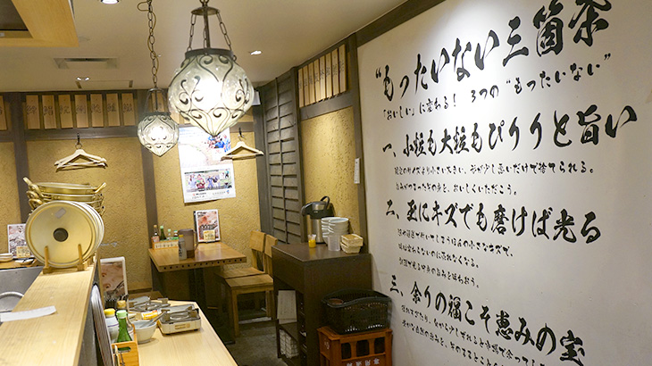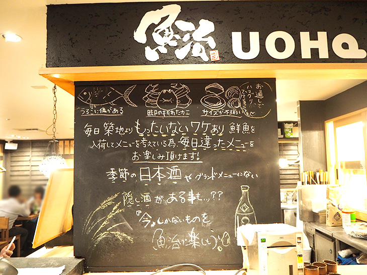 店内を見渡すと、あちらこちらに「もったいない」の文字が。それもそのはず、魚治さんは、築地市場で売れ残った魚を、おいしくリーズナブルに食べさせてくれるお店なんです!