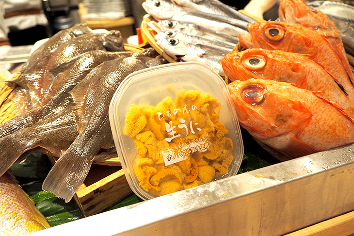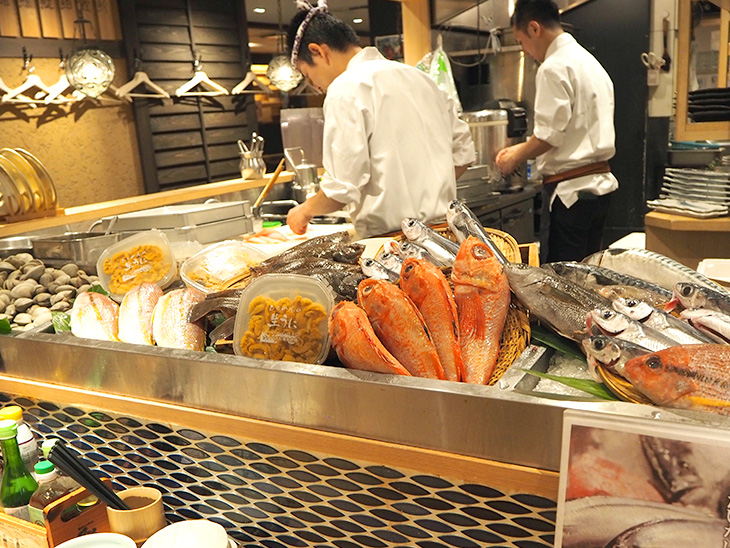 カウンターには入荷した魚がずらり。どれも新鮮でおいしそうー!!