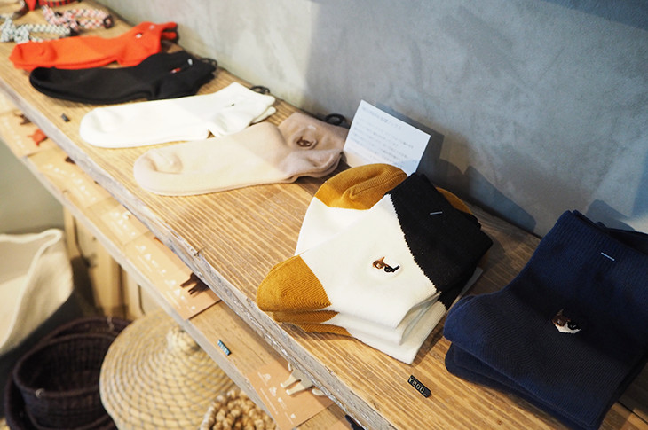 直線で三毛猫の柄を表現されたソックス(800円)。かっこかわいい。