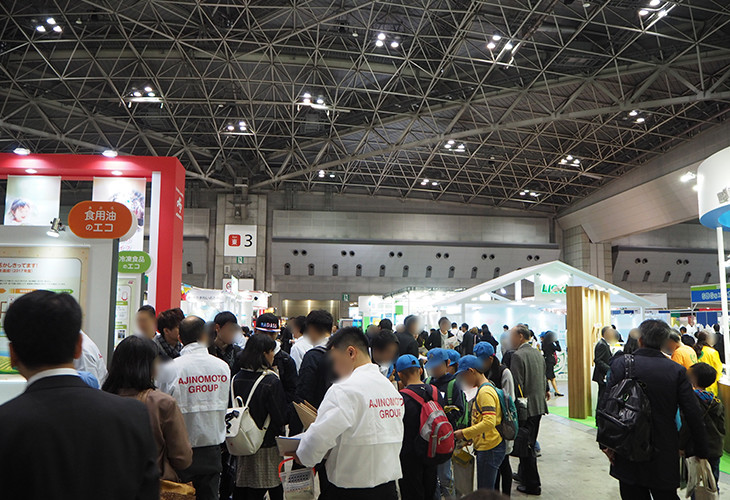 花王の展示テーマは「地球のきれいのために」と「人のきれいのために」。地球環境や人の生活に配慮した自社商品や活動を紹介してて、たくさんの人が集まっていました。