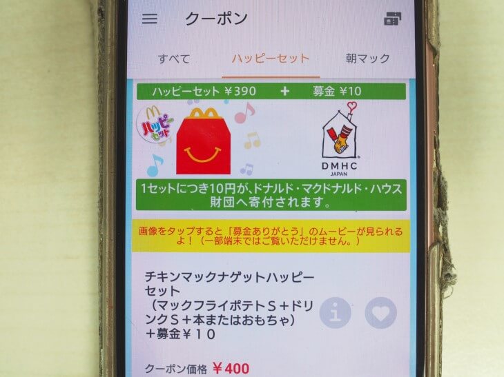 さて、ハッピーセットの内50円が「ドナルド・マクドナルド・ハウス」へ寄付されるのは当日の11月10日だけですが、実はマクドナルドの公式クーポンを使うことで普段から寄付することができるのをご存知でしょうか?