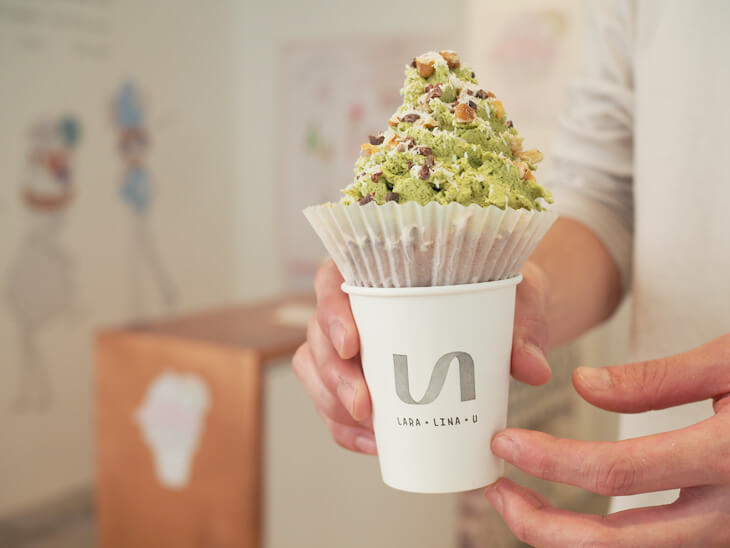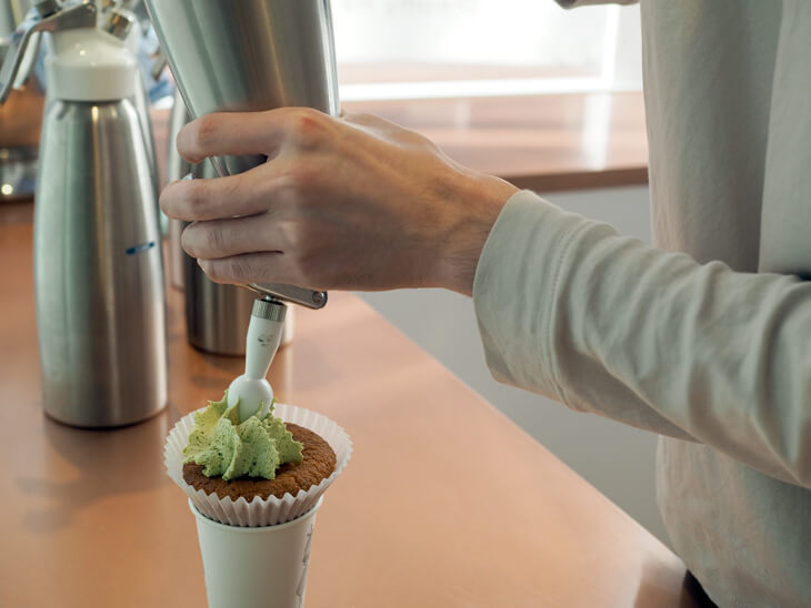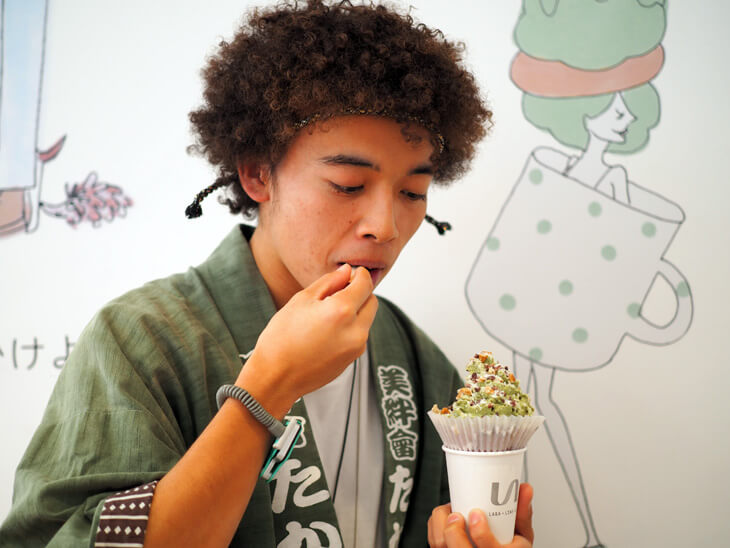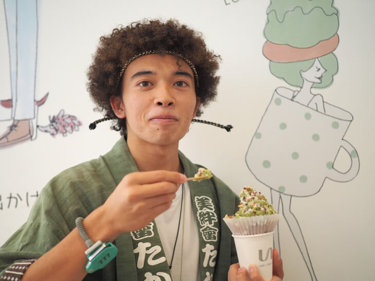 ▼今回ははっぴの色に合わせて抹茶×豆乳クリームの「Leafy」(リーフィー)をchoice