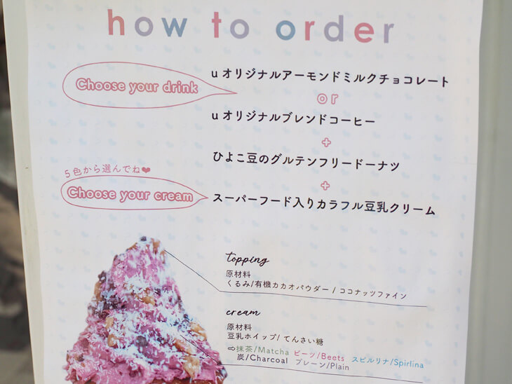 「Dreamy Heaven」はu omotsandoのオリジナルスイーツドリンクで、All plant-based、つまり、全ての原材料を植物由来にこだわった人間・地球環境・動物のすべてに優しい商品です。
