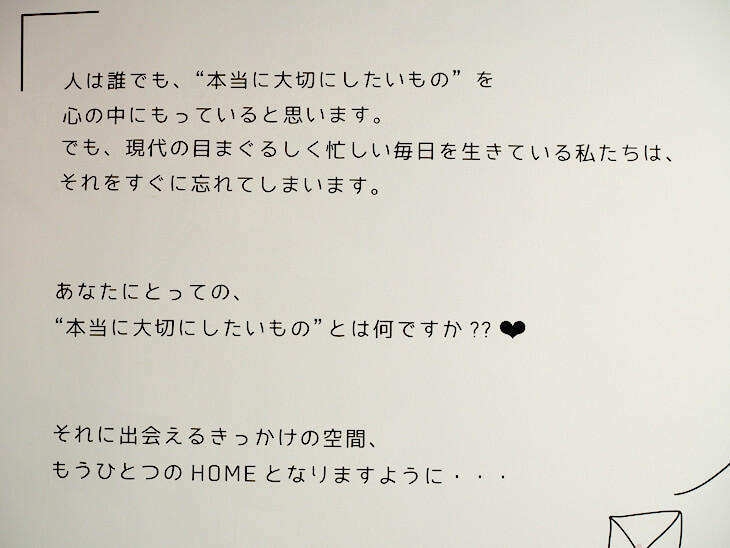 美術館のように店内の壁の至る所に記されたメッセージ。