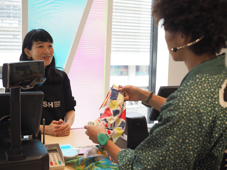 店員さん:「こちらのゴリラは、障がいを持ったアーティストがデザインした人気の柄のひとつです。とっても素敵ですよね。」