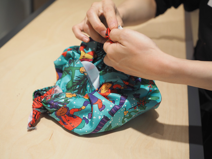 LUSHには結び方を熟知した風呂敷マスターが沢山いるので、実際に店舗でKnot Wrapを手に教えて貰うのも楽しみ方のひとつかもしれません!