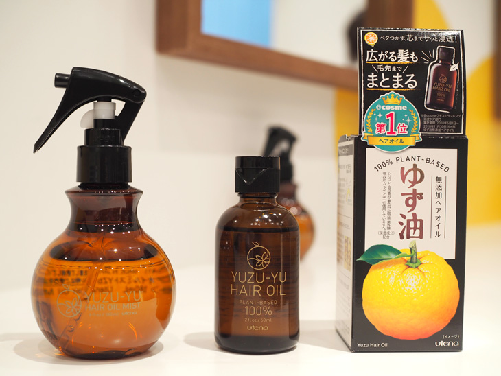 utenaの商品モデルでもある瞳さんは「ゆず油」を普段から愛用しているそうで、最近髪につやがなくなってきたと感じる筆者としても大変気になる商品でした。(実は愛用する男性も多いのだとか…!)